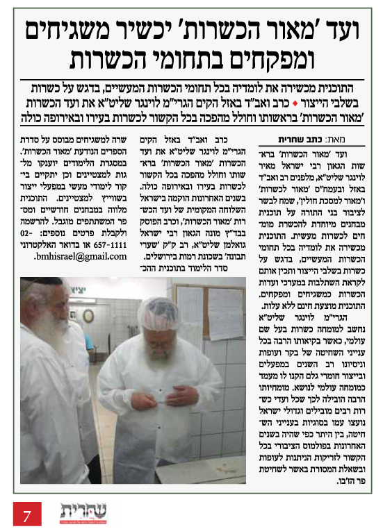 The Maor HaKashrut Committee will train supervisors in the fields of kashrut « PreviousNext » Leave a Reply Click here to cancel reply. Δ